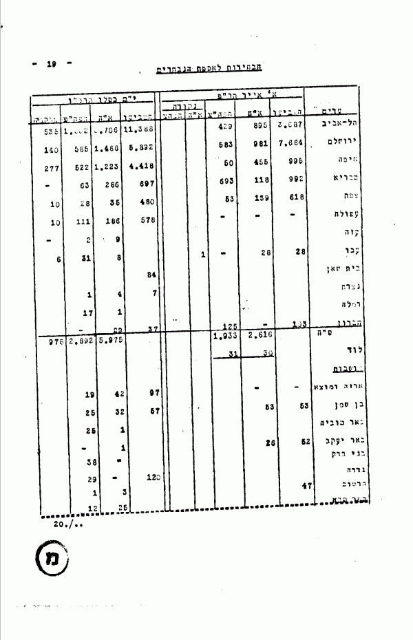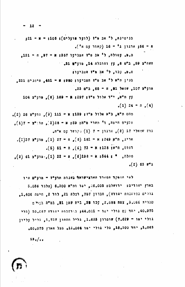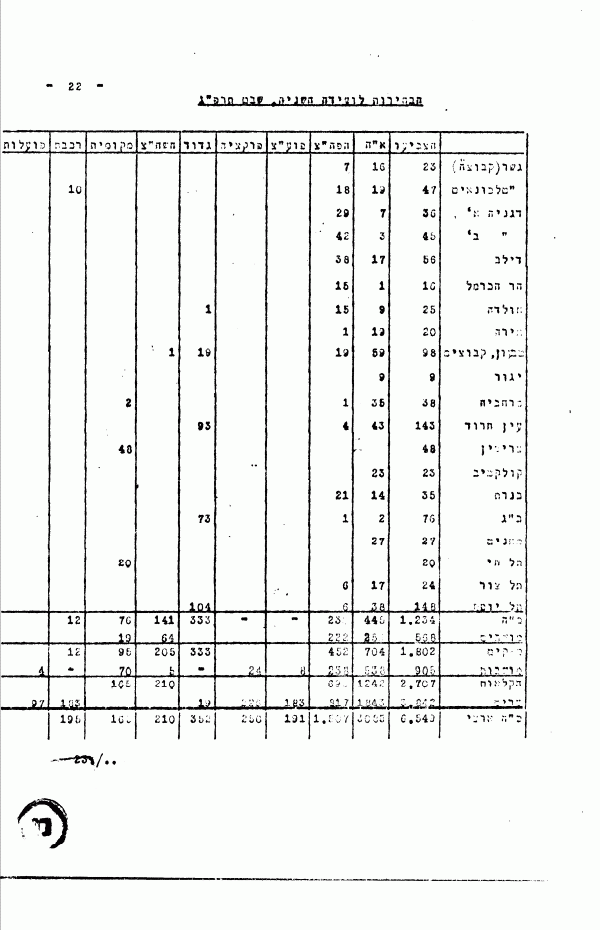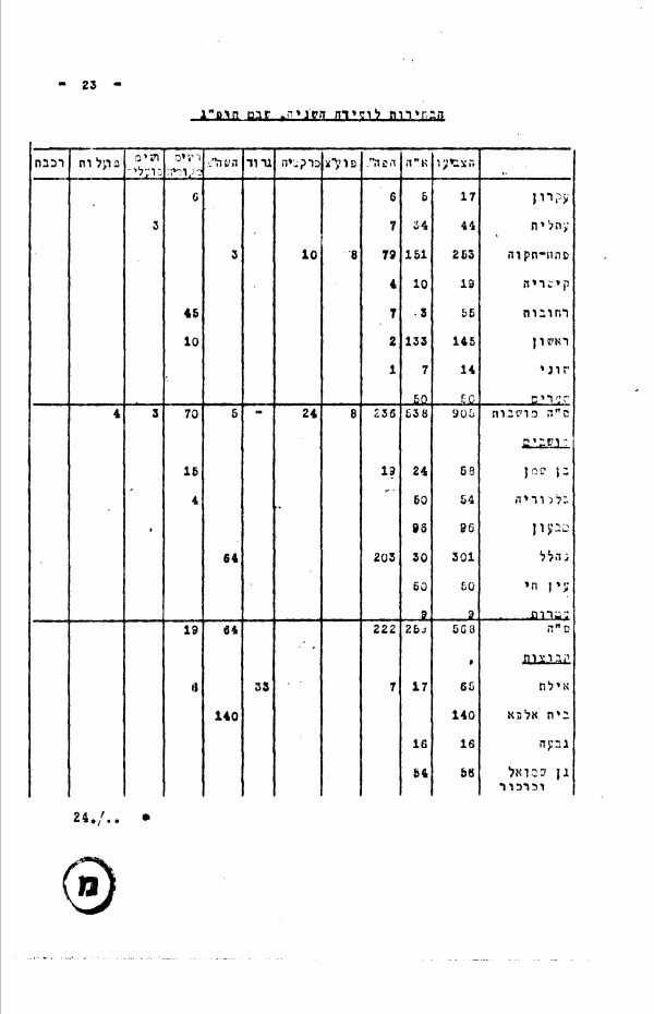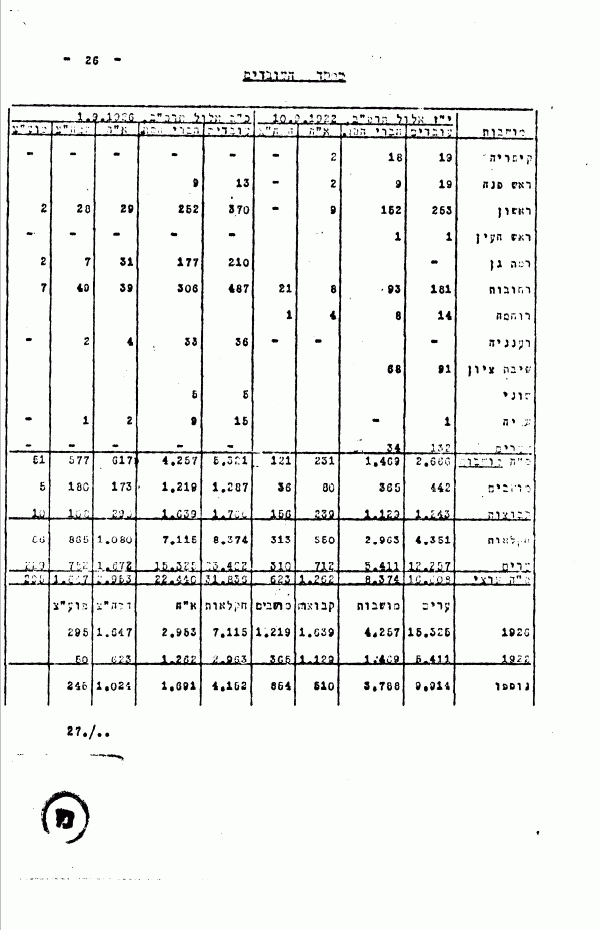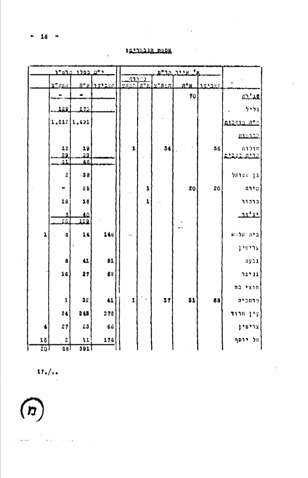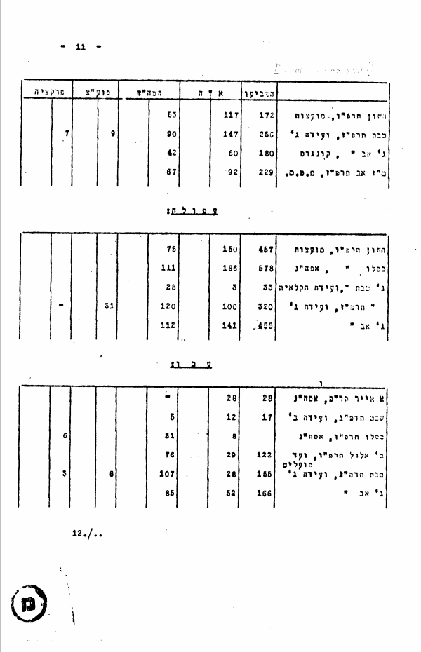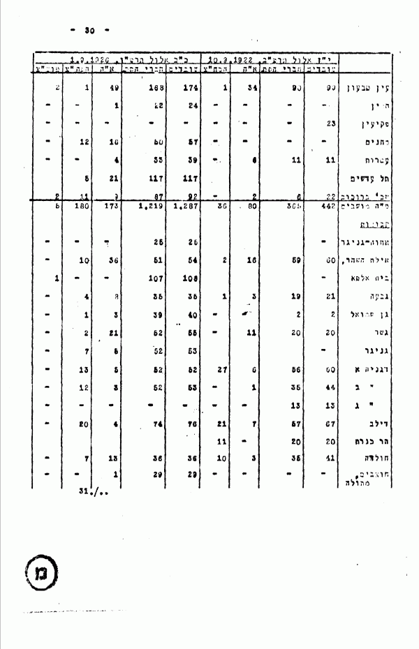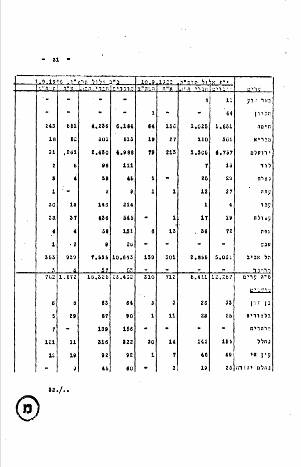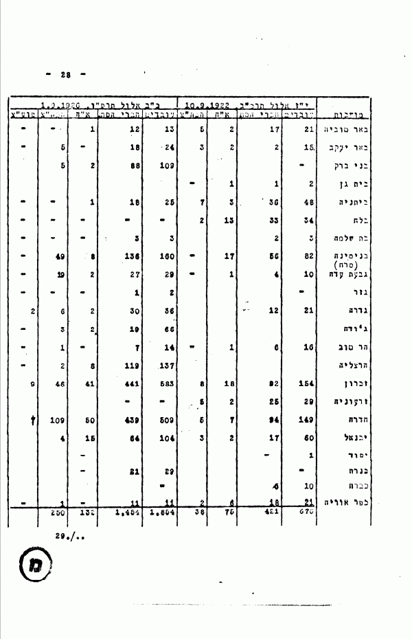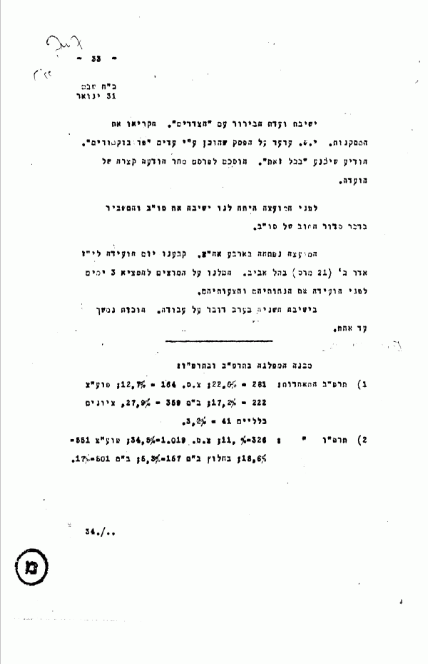 {0067-01} ]תוצאות הבחירות להסתדרות שנערכו בסוף דצמבר 1926 טבלת נתונים מספריים ראה טקסט מודפס[ כ"ז טבת תרפ"ז 1 ינואר 1927 הצביעו א"ה הפה"צ פוע"צ קבוצים גוש אופוז במ רויז קבוצות אילת [5#] 1 3 4 9 29 = 1 1 גשר 3 49 52 דגניה א1 48 11 61 . " ב44 11 55 . כנרת 2 1 33 36 73 מרקנהוף גליל הקבוצות מושבים 28 4 3 1 0 9 561 503 1.126 = = = = = = = = = = = = = = = = = = = = = = = = = = = = = = = = = משקים 31 20 145 5 197 47 858 1.249 2.591 מושבות 246,105 88 161 77 363 282 2.241 2.861 6 חקלאות ערים 070 10.671,260 6,99 155 154 630 321 910 2 עוברים ס"ה 555 9.064 17.183,205 246 227 715 709 1.213 4 =================================================================== {0067-02} הצביעו א"ה הפה"צ פוע"צ קבוצים גוש אופוז במ רויז קבוצות חולדה 10 17 27 קרית ענבים 3 1 45 4 88 גן שמואל 4 1 27 39 כרכור 1 10 16 42 טירה 8 31 2C 1 5 4 1 אחוה אבו שושה 1 9 1 11 בית אלפא 1 23 1 47 5 5 20 102 גניגר 9 14 19 44 גבתון 11 11 גבעה ושרון 32 55 חפצי בה 67 = 1 33 10 1 12 יגור ג3 68 7 מרחביה 11 2 3 2 27 46 עין חרוד 8ה1 1 9 11 259 2 צריפין 5 6 21 10 44 תל יוסף 5 73 2 72 15 9 48 224 עמק 01 515 984ג 2 4 140 3 160 ================================================================= {0067-03} כ"ט טבת 3 ינואר נסעתי בצהרים לחיפה. בערב חגג אבא את מלואת לו שבעים שנה. הצביעו א"ה הפה"צ פוע"צ קבוצים גוש אופוז במ רויז מושבים בן שמן 2 39 26 67 נחלת יהודה 27 1 3 66 101 עטרות 2 26 26 עין חי יהודה בלפוריה 1 1 33 37 72 כפר יחזקאל 3 2 7 148 187 מרחביה 68 4 110 נהלל 3 3 1 330 49 385 תל עדשים עמק מחנים מושבים 28 4 3 1 6 9 561 503 .1 26 =================================================================== {0067-04} א' שבט, 4.1.1927 הצביעו א"ה הפה"צ פוע"צ קבוצים גוש אופוז ב.מ. רויז פתח-תקוה 31 17 5 99 3 362 553 1.163 רעננה 13 9 22 ראשון 113 81 238 - 7 20 3 11 1 רחובות מושבות יהודה 2 2 - 116 31 C1 4 15 1 בנימינה גבעת עדה 1 1 19 2 23 בת שלמה 3 3 - - זכרון 22 13 30 71 91 228 חדרה 7 8 1 2 1 29 232 132 410 עתלית 6 29 40 שפיה מושבות שומרון 3 כפר ילדים 9 2 17 - 2 4 ביתניה 20 יבנאל 22 41 מגדל 1 25 2 6 - 1 מתולה 5 6 2 3 .0 (חוצבים) גליל 2 5 1 6 4 66 56 146 ס"ה מושבות 74 68 16 72 166 235 1.383 1.612 3.655 =============================================================================== {0067-05} תוצאות הבחירות לועידה השלישית כ"א טבת תרפ"ז הצביעו א"ה הפה"צ פוע"צ קבוצים גוש אופוז ב.מ. רויז . ריקים פסול תל-אביב 48 132 35 289 35 421 907 3235 5142 חיפה 40 12 45 165 168 300 696 1422 2872 ירושלם 66 88 141 310 1081 1630ג 34 סג גג טבריא 9 90 147 256 - 7 - - = עפולה 81 31 120 100 320 - 1 12 - עכו 8 107 28 155 - 8 3 - - עזה 4 19 32 - 9 - - - צפת, 28 33 58 צמח ערים מושבות באר טוביה 10 19 30 באר יעקב 11 . 14 ברוכוב מונטיפיורי ר"ג, ב"ב 3 1 20 56 183 270 - 3 3 גדרה 5 1 18 7 31 הרצליה 1 3 27 48 82 - 3 כפר סבא 4 12 1 8 60 84 - 1 מגדיאל 1 1 8 8 42 87 מקוה 1 12 4 . 29 38 81 מוצא 1 4 6 11 נס ציונה 2 2 1 14 5 1 138 78 242 =================================================================== {0067-06} בחירות בתל-אביב: הצביעו א " ח הפה"צ פוע"צ פרקציה א' אייר תרפ(אסה"נ) 895 3.6 י.,.2@ 429 ,24 11.6 - - כסלו תרפא(ועידה א) 336 780 @ ...4 253 ,34 32 - 100 שבט תרפג ( " ב) 870 1.812 @ .. 439 48,2,183 @=24 117 =10ל.@@ תמוז " (מועצות) 958 1.791 .,.4@ 328 53,3,158 249@,=18 8.4 אלול תרפד( " ) .@79 984 @.1י.,7 356 49,9,265 @@@@=17 1 - כח חשון תרפו( " ) . 2.530 .,@@4.063 616 62י1,567 @@@=15 1 - יט כסלו " (אסה"נ) 2.746@88 .11 1,1.571,@ 24 13,.6@ @ - @@@,."535 כא טבת תרפז (ועידה ג) @5.564 3.466 ,3@ 990 62 8,421@ 5,293@=17 @@,.=7 ג' אב " (קונגרס) 3.293 8.262 ,@@ 814 39 9,@@ בחירות בירושלים א אייר תרפ(אסה"נ) 981 7.684 ,7@ 583 12 ,@@ 7 - - - - שבט תרפג(ועידה ב') 485 972 י,.9 183 49 ,@@@ 18 - - 68 7@ תמוז " (מועצות) 350 723 י,.8 88 49 @י1,2ו . 6,96@41 5 אלול תרפד( " ) 1ג 419 1.0 ,@@ 194 41 .,1@ 92 1,49@,19 9 חשון תרפו( " ) 823 1.276 .,2@ 202 ,@65 65 18 @@ ..3 55,4 כסלו " (אסה"נ) 1.553 5.892 י,3@ 607 26 ,..3@ 10 - - 140 7:7,8 1oC @3,. 16 67,141 314 1.907,4.. 1.087 .. )'טבת תרפז (ועידה ג 2.5.u 796 258 )ג' אב " (קונגרס {0067-07} בחירות להסתדרות הפקידים ( י"א טבת תרפ"ז ): תל-אביב הצביעו ,520 מהם א"ה ,287 הפה"צ 232 ירושלם 66 143 216 חיפה 67 44 101 ס"ה 474 1837(%57) 357 (%43) ==== ====== ======== בחירות בחיפה : הצביעו א "ה הפה"צ פוע"צ פרקציה א' אייר תרפ,אסה"נ . 455 ,995:6 5 50 45 - - שבט תרפג,ועידה ב' 430 898 ,6 1 8 ,46 17 - ..5 41,4 תמוז ," מועצות 4 485 ,752 81 64 ,.7; 81 10 ,7,10 אלול תרפד, " 3 8 20 : ,9 86 13 . 107 1 . 140 41 חשון תרפו " . 77 .1.358,1,2 275 .,57 92 20(,6 2 2,5 יט כסלו " , אסה"נ 4 . 1.255 ,4.416 ..7 61 2,2 . 12,6 כא טבת תרפז, ועידה ג' 4 1.498 2.971,5 69 50,1 300 ,23 1 5 . ,5 ז' אב " , קונגרס 628 1.334 2.693 בחירות בנשר: יט כסלו תרפו, אסה"נ 63 75 כט כסלו תרפז, מועצה 83 66 206 כא טבת " , ועידה ג 17 14 104 84 240 {0067-08} בחירות בפתח-תקוה: הצביעו א " ה ה